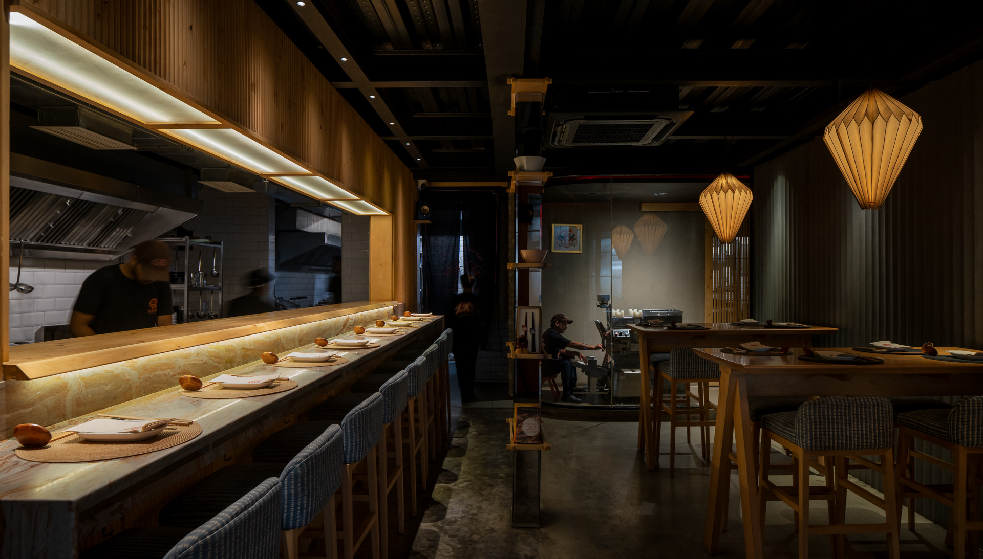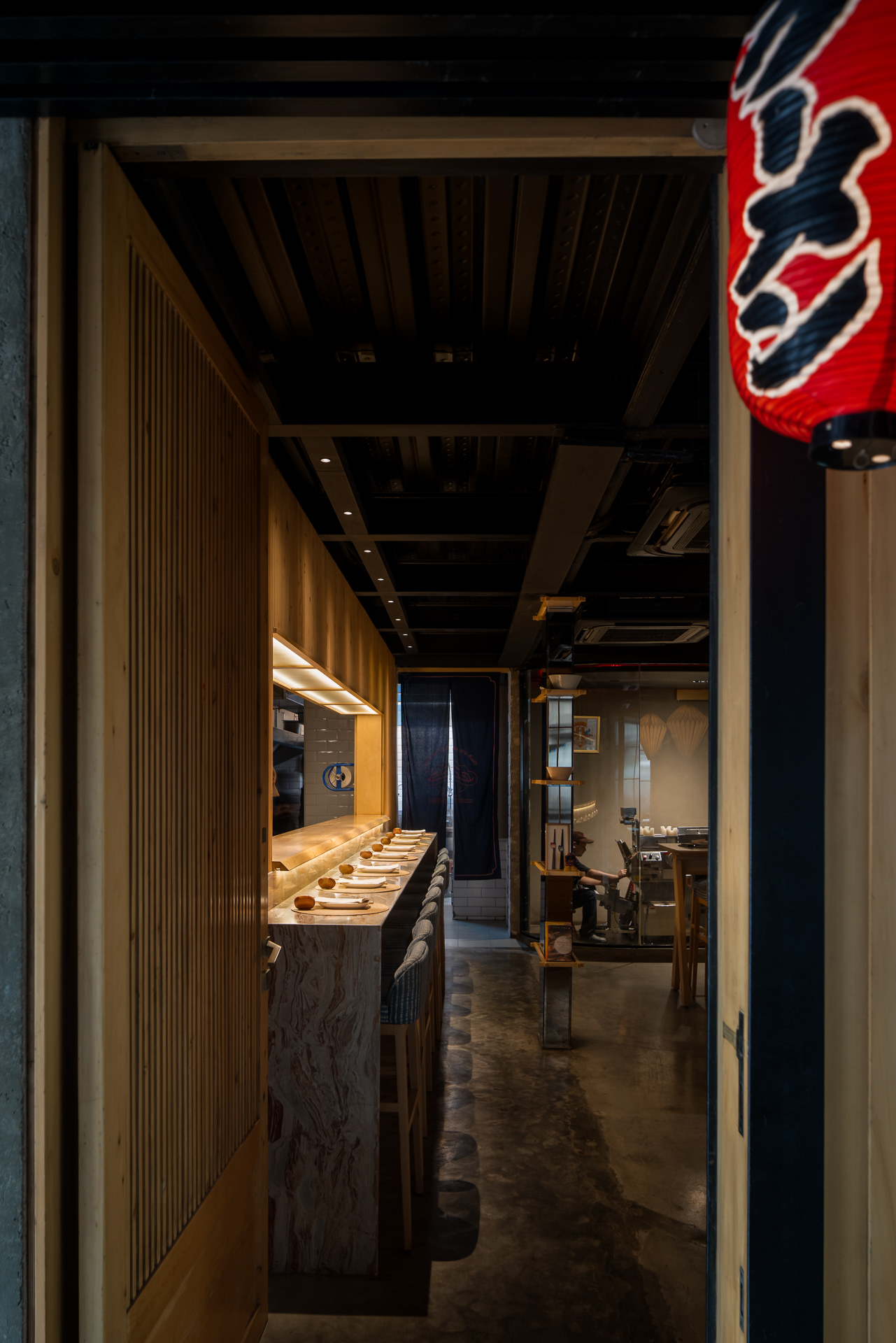 Naru Noodle Bar is conceived as an intimate, over-the-counter ramen experience—where food, craft, and space unfold together. What began as an 8-seater pop-up has evolved into a 20-seat noodle bar, yet it retains the spirit of a traditional Japanese ramen stall: compact, focused, and deeply experiential.